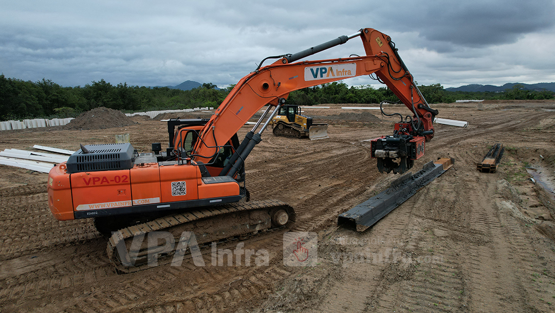 A VPA Infra atuou de forma integrada, sendo responsável, tanto pelo fornecimento das Estacas Prancha de PVC, quanto pela execução da cravação, utilizando equipamentos adequados ao método construtivo e equipe técnica especializada. Esse modelo de solução completa permitiu maior controle sobre a execução, alinhamento das estacas e qualidade final do sistema instalado.
